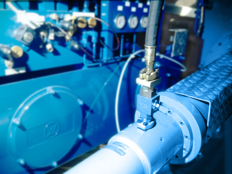 Los cilindros Hänchen, catalogados como cilindro especial debido a una rosca especial del vástago, mueven tres palas de rotor simultáneamente alrededor de su eje longitudinal mediante una varilla de empuje. Forman el rotor con un diámetro de 57 m. El mecanismo de ajuste funciona de forma similar al de una hélice de barco moderna. El cilindro hidráulico debe posicionar las palas con una precisión de hasta 0,1 grados. Esta es la única manera de realizar el posicionamiento exacto del ángulo de las palas especificado por el desarrollo. Las varillas de empuje de los cilindros recorren tanto micro movimientos como recorridos continuos. Dependiendo de la velocidad del viento, se alcanza así el punto de funcionamiento que garantiza una velocidad constante del generador. El funcionamiento de control es decisivo aquí. Porque los movimientos mínimos constantes están asociados a altas cargas para el funcionamiento de la instalación. Precisamente estos micro movimientos suponen un reto para la mecánica, la electromecánica y la hidráulica por igual: Debe garantizarse que la lubricación esté asegurada incluso con movimientos mínimos continuos en un sector de 0,5 mm.