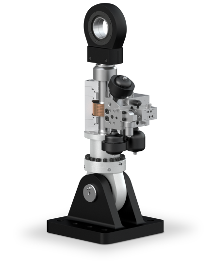 En los servocilindros regulados, que aplican una fuerza de 400 kN, se utiliza el cierre por estrangulación en cono flotante patentado de la ejecución Servofloat. Un casquillo de acero sigue la deflexión radial del vástago con una holgura de cierre prácticamente constante de unas pocas 1/100 mm en toda la gama de presión. Sin embargo, este proceso sólo funciona con una precisión de producción del orden de pocos μm, ya que de lo contrario la fuga provocaría elevadas pérdidas hidráulicas.