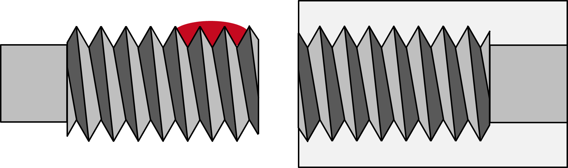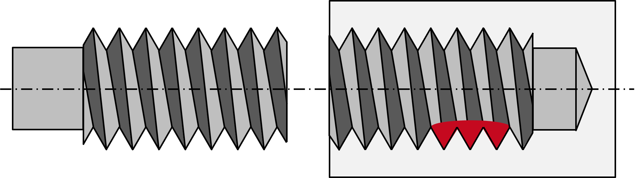 Al enroscar el tornillo, el adhesivo se presiona hacia el interior y se distribuye por toda la superficie de la rosca.