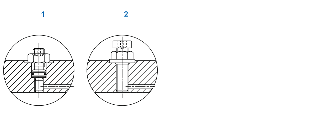 En vástagos a partir de 30 mm de diámetro, los elementos de fijación atornillados están asegurados con un prisionero radial.