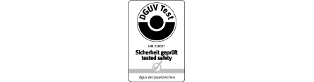 Este elemento de sujeción lleva el certificado de la prueba DGUV (sistema de prueba y certificación del seguro legal alemán de accidentes). Para su uso como componente de seguridad es para el Ratio-Clamp® un B10DValor según EN ISO 13849-1 disponible. La seguridad doble exigida por la DGUV para la fuerza de bloqueo máxima ya se ha tenido en cuenta en la indicación de carga de los datos técnicos.